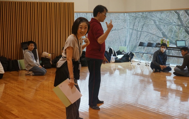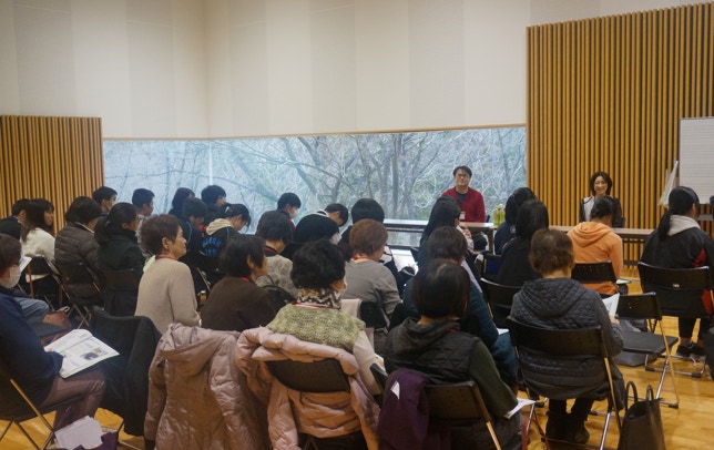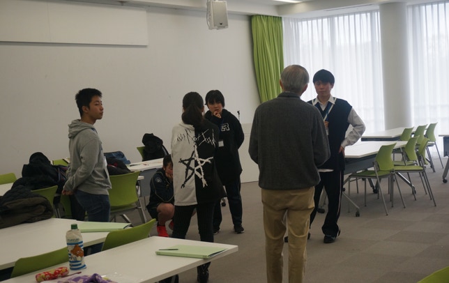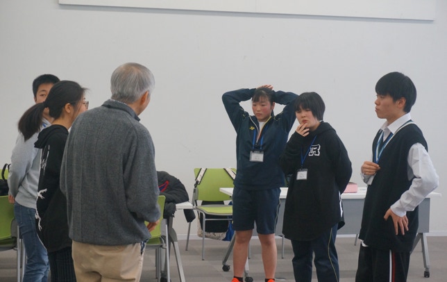 2月22日(土)富岡町の文化交流センター学びの森で、昨年に続き「世代間交流会」を開催しました。今年度は、県中地区の高校演劇部に所属している高校生10名と、ふたば未来学園高校演劇部の生徒7名、本会の語り人9名、富岡町民劇参加者3名が参加しました。はじめに語り人から、富岡町の現状、震災後の状況、避難生活の中での出来事、今の思いなどをグループに分かれて聞き、次にそれを、演劇にして発表するというワークショップです。5〜6名のグループに分かれた高校生が、1〜2名の語り人の話を聞いて、2時間かけて10分以内の演劇にします。何度も語り人に質問したり、高校生同士で話し合ったり、震災・原発事故による被災者の思いが、「自分事」となる時間を、地域を越えて世代を超えて実現しました。発表には町民も観客として参加しました。東京から劇団を主催する佐川大輔氏、中原クレア氏を講師として招き、テーマの捉え方、表現の方法など助言指導を受けました。伝える側、受け止める側、双方にとって有意義な会となりました。
