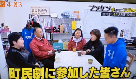 当会代表の青木淑子が恩師として登場。他町民劇のメンバーも激励に集まりテレビに出ちゃいました〜